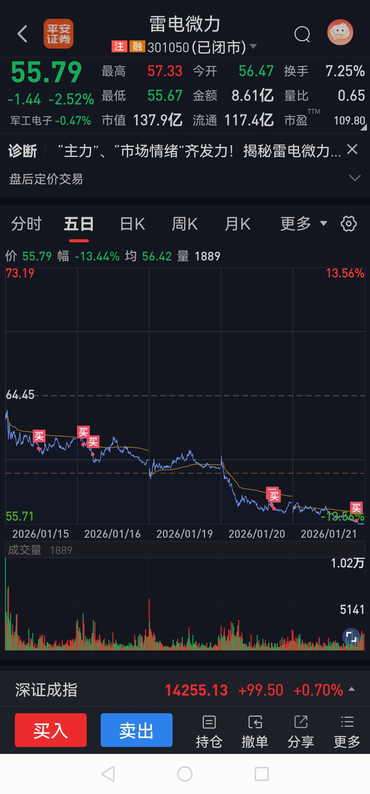 $雷电微力(SZ301050)$ 天天补仓,底在哪?