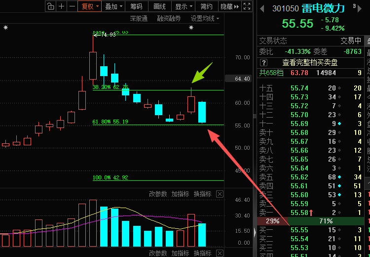 短线:现在55.55左右我入场一些!
