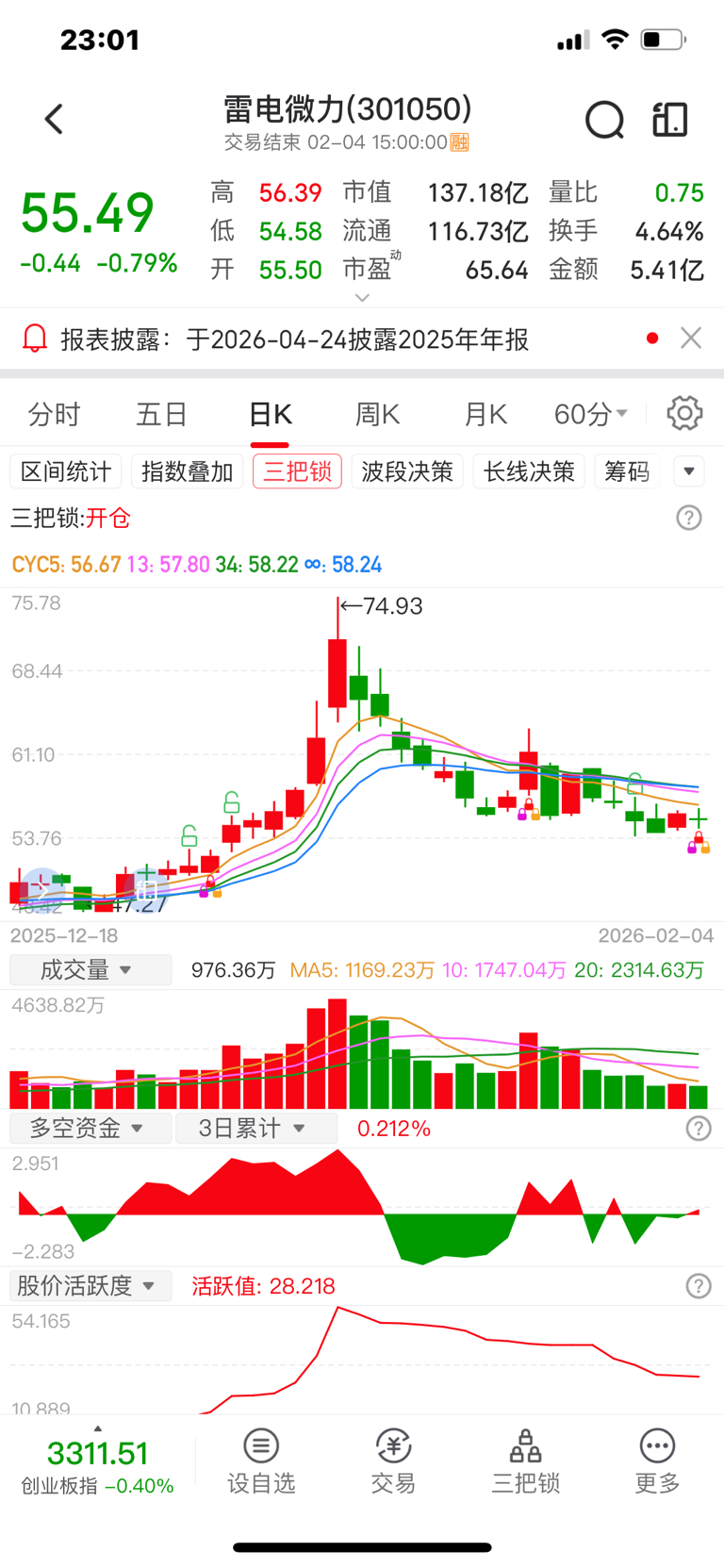 $雷电微力(SZ301050)$ 调整了17个交易日,今天收缩量十字星,向上反转概率较大,慢慢加仓,耐心等待,希望新年再创新高。