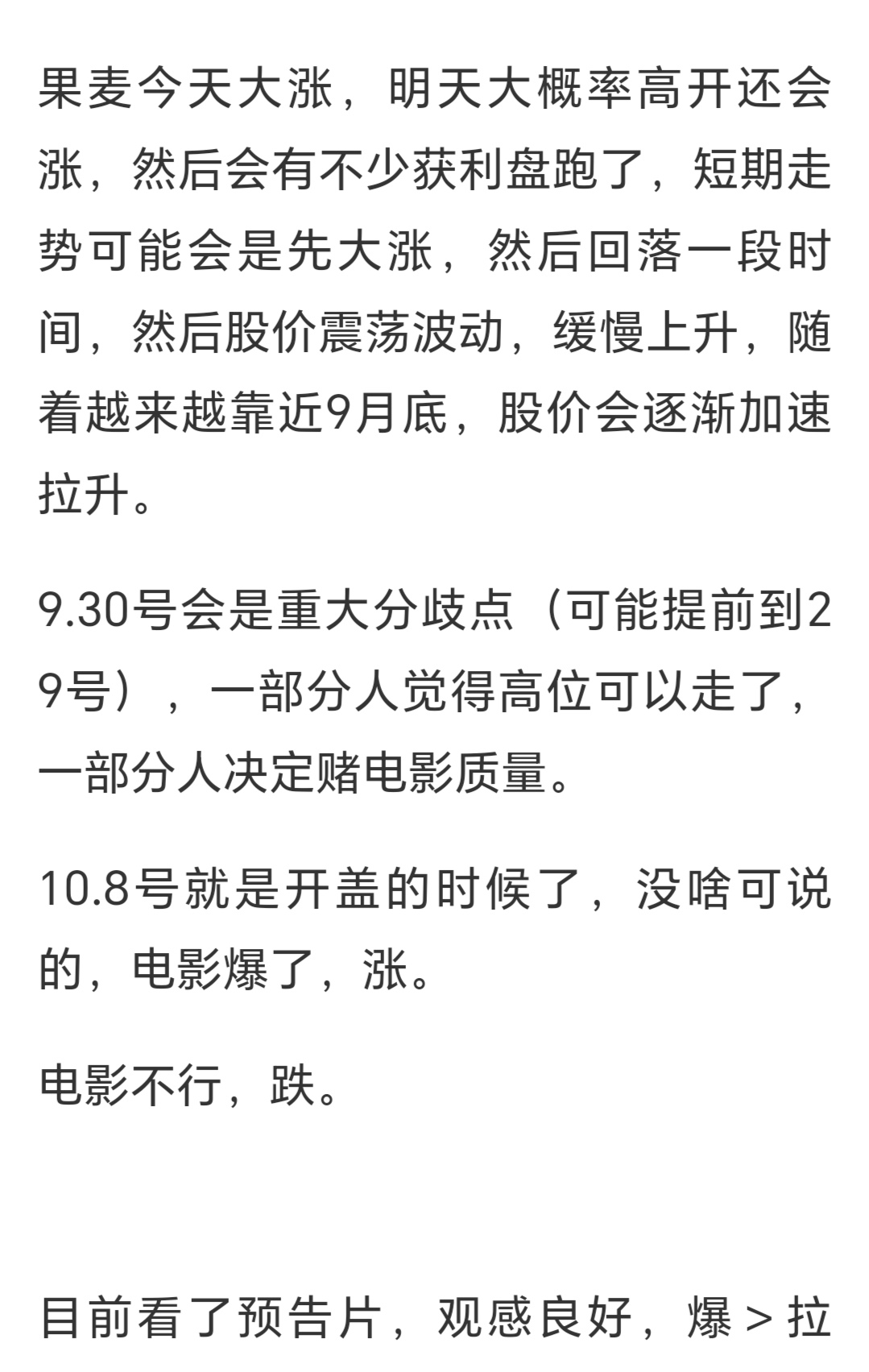 愿意相信电影,持股过国庆。不愿意相信,抛了去别的地方发财。