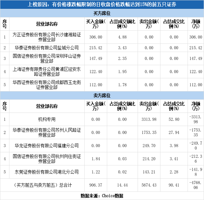 机构现身龙虎榜,果麦文化跌停(10-09)