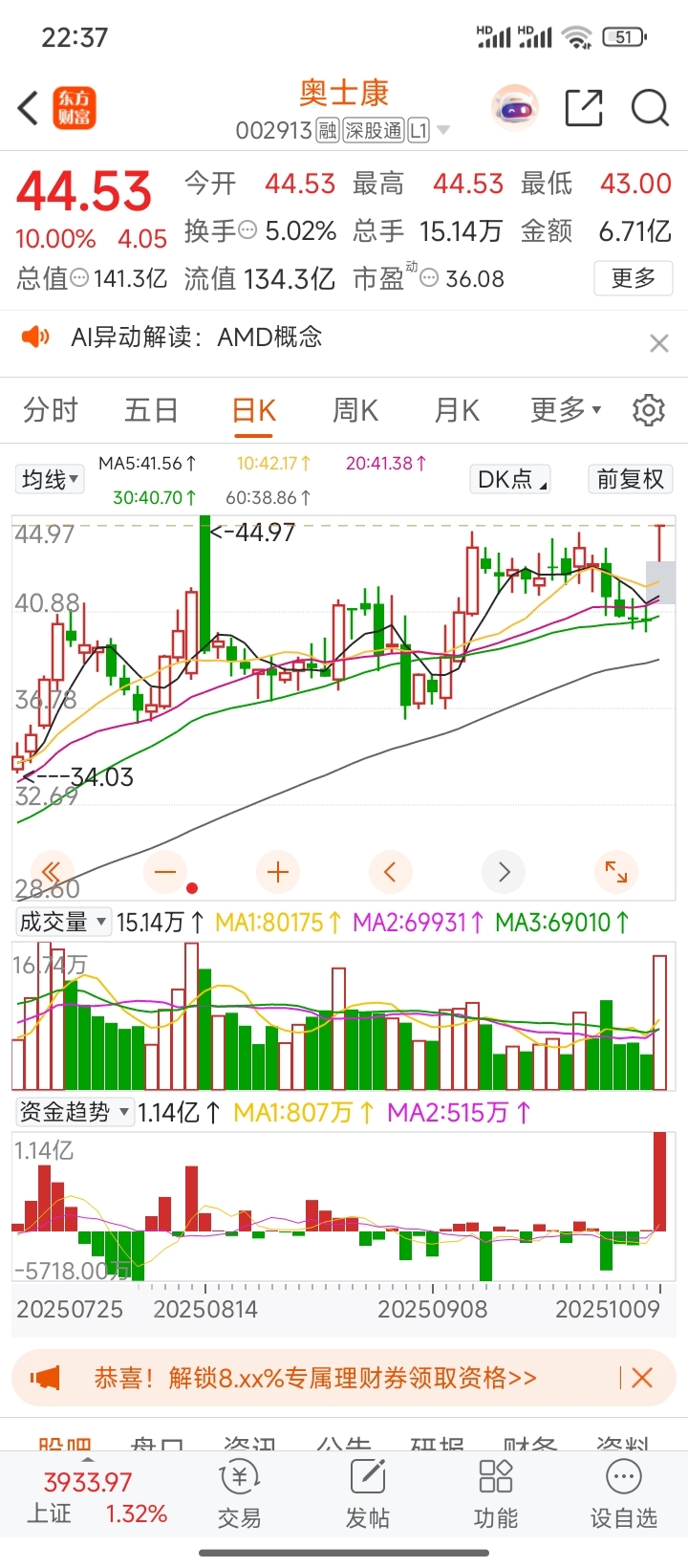$果麦文化(SZ301052)$  请问AMD概念股,这个 奥士康(SZ002913)明天会不会高开秒板?有没参与价值的呢?$南新制药(SH688189)$  $拓山重工(SZ001226)$