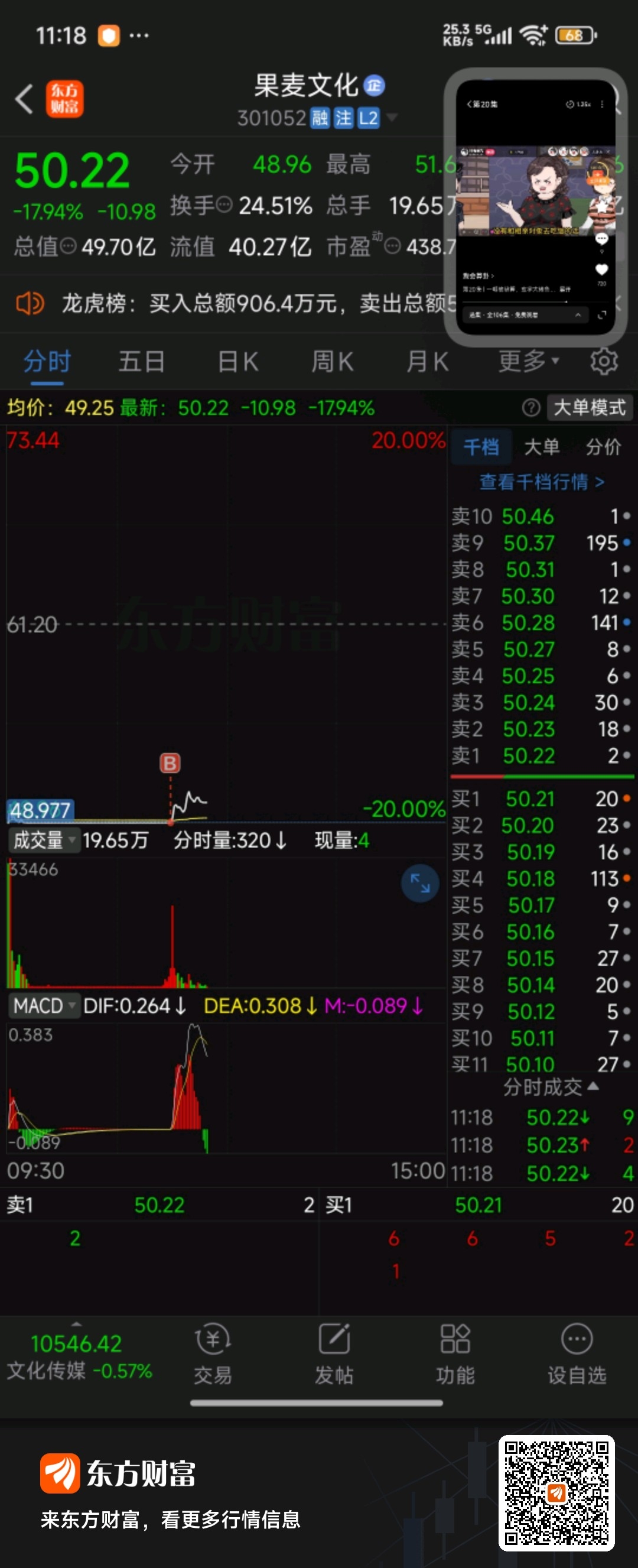 $果麦文化(SZ301052)$ 买了一手,周末能有一顿火锅钱吗?