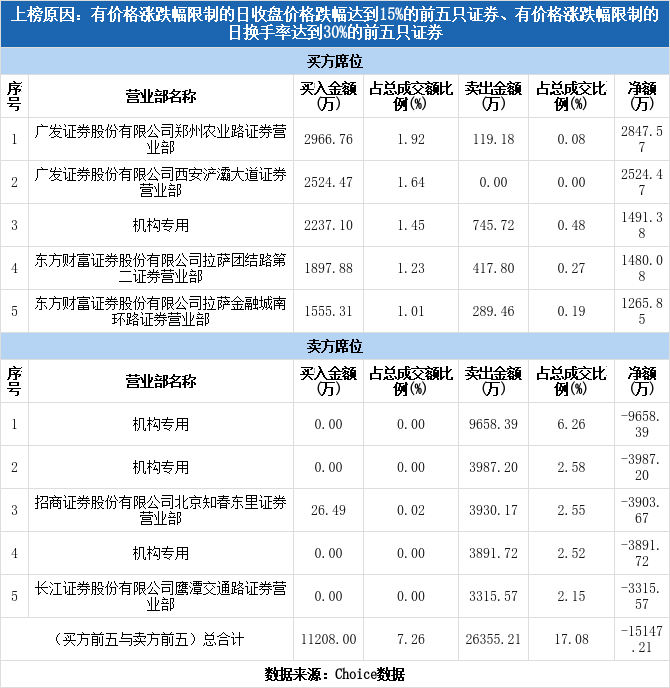 龙虎榜数据显示,今日共4个机构席位出现在龙虎榜单上,分别位列买三、卖一、卖二、卖四,合计净卖出1.60亿元,占龙虎榜净卖额的105.93%。