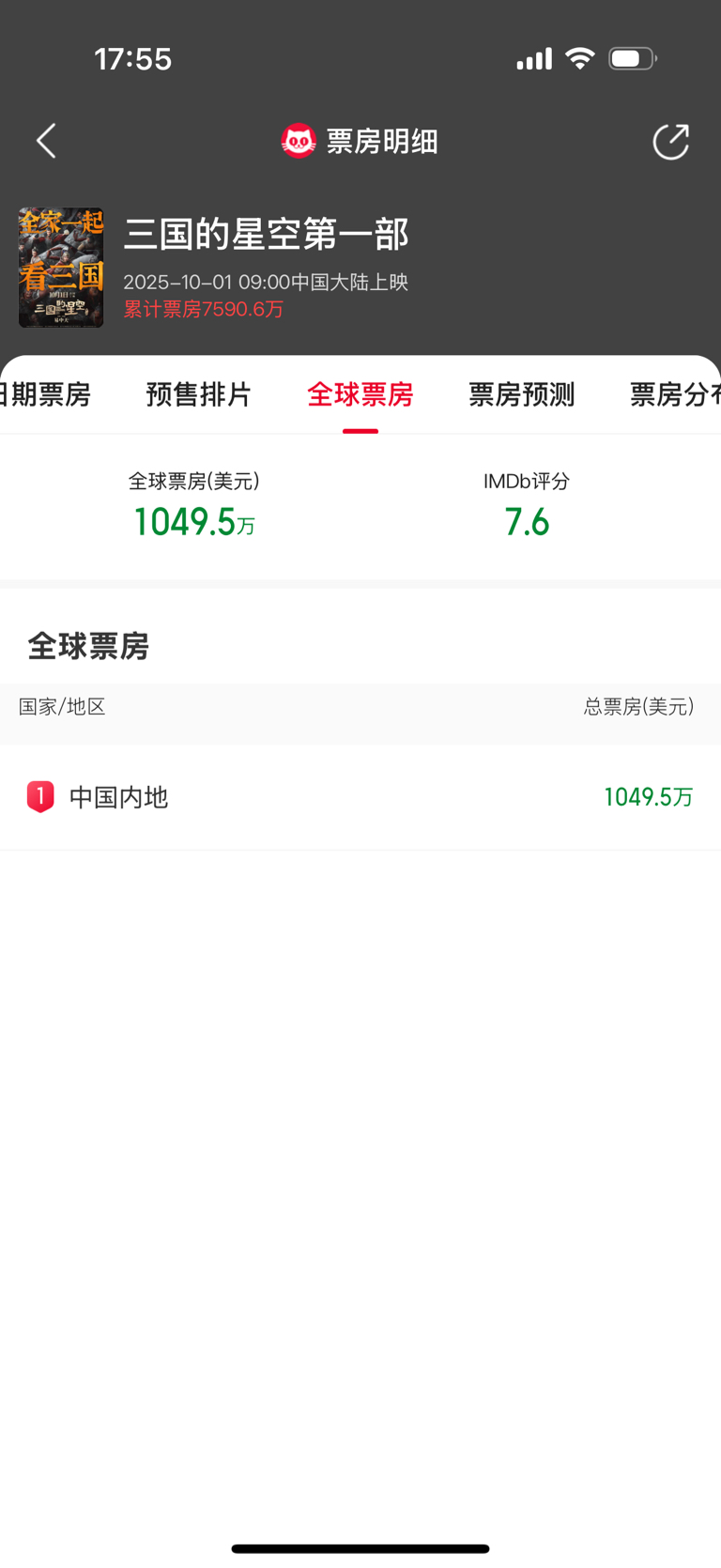 外网评分排国庆档第一,断层领先!!其他几部基本5点多。
