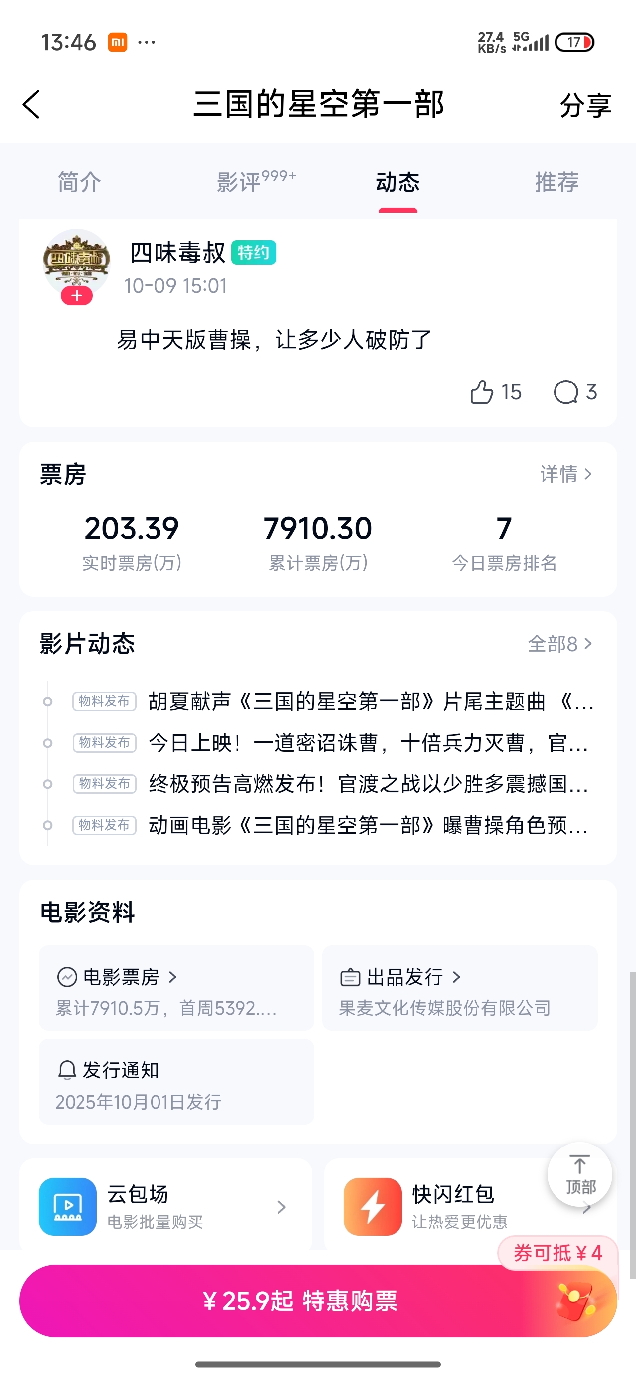 $果麦文化(SZ301052)$ 今天票房是前天的7倍