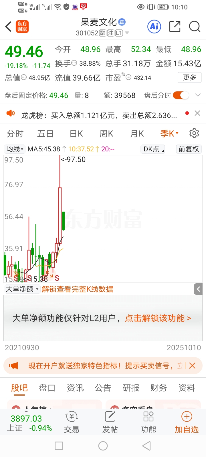 $果麦文化(SZ301052)$ 看看这个季线,能到128元去?