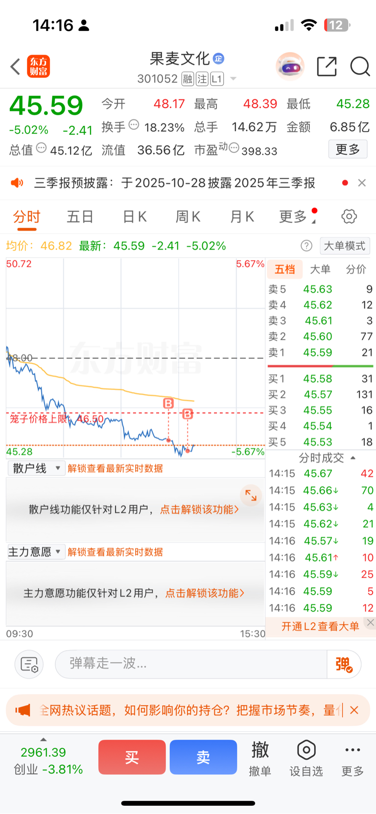 $果麦文化(SZ301052)$ 也不知道是不是抄底了 有可能还有地下室