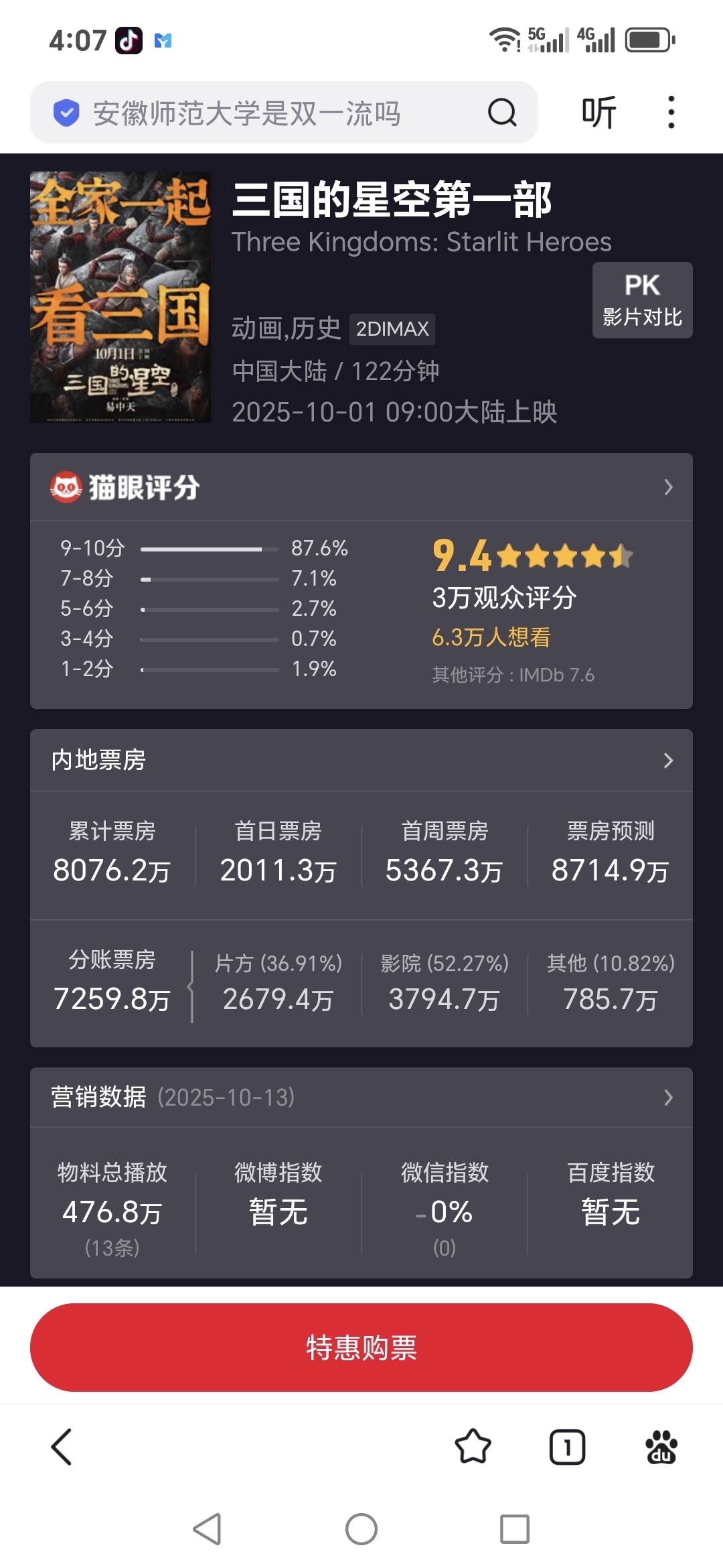$果麦文化(SZ301052)$ 10月14日,果麦文化主投三国的星空亏损1800万,看看后面的票房 预计亏损在1000万左右