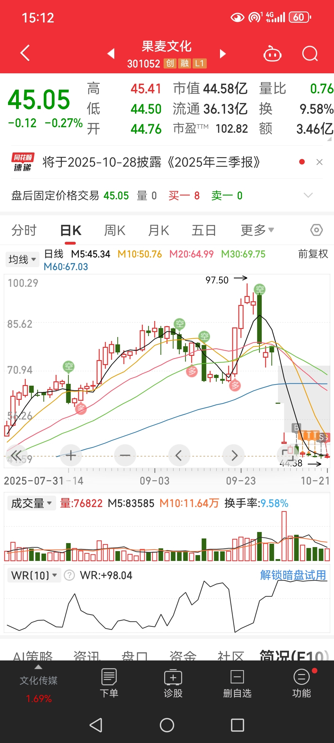 $果麦文化(SZ301052)$ 昨天水下卖了后悔一个晚上,可算让我买回来咯
