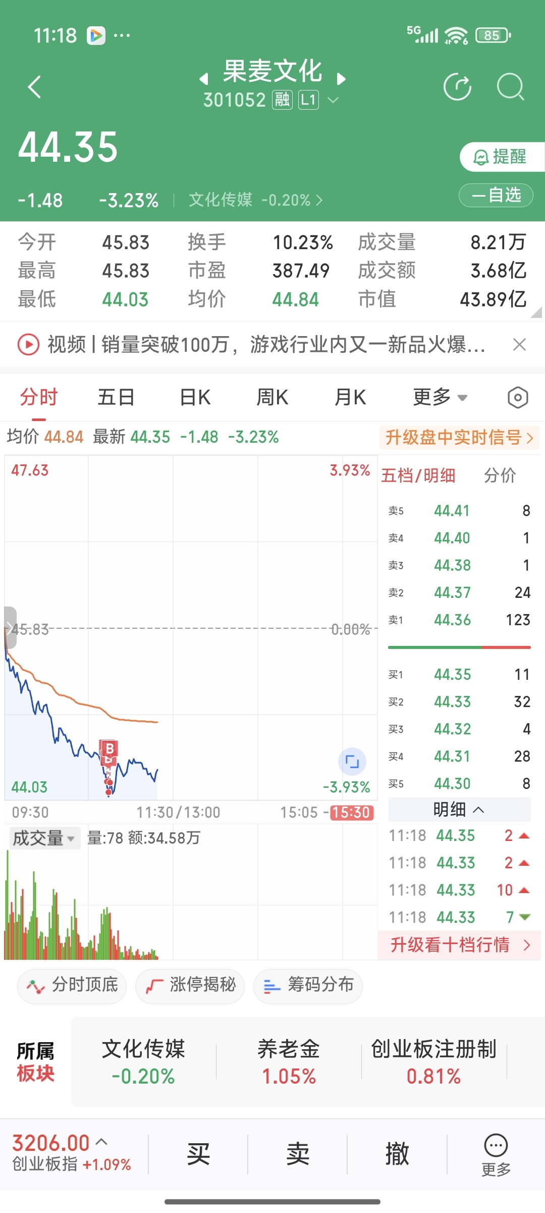 $果麦文化(SZ301052)$ 有啥怕的都不知道 拿一段时间随他 破40遇见机会再吃 随你