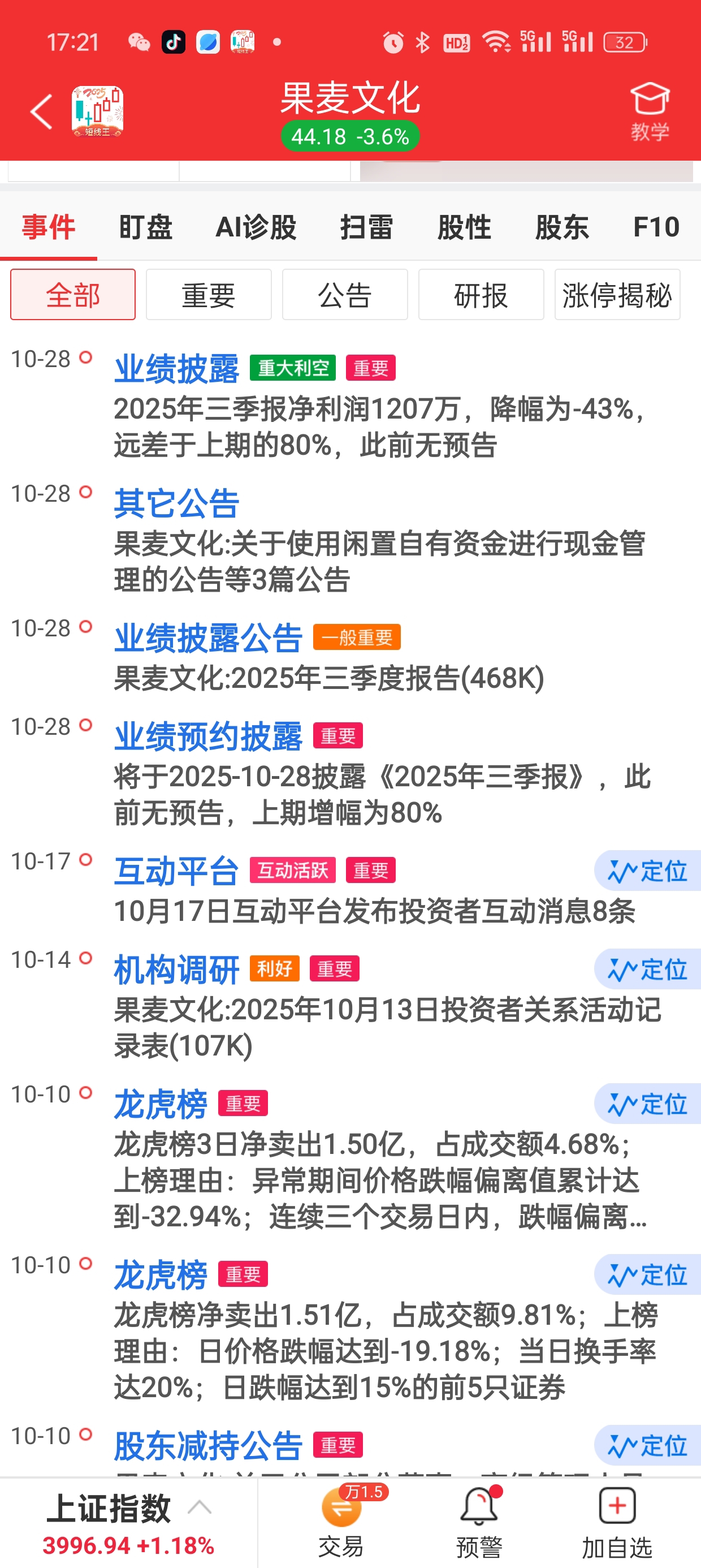 $果麦文化(SZ301052)$ 显示重大利空业绩降幅为-43%,明天要清仓,还是继续持股