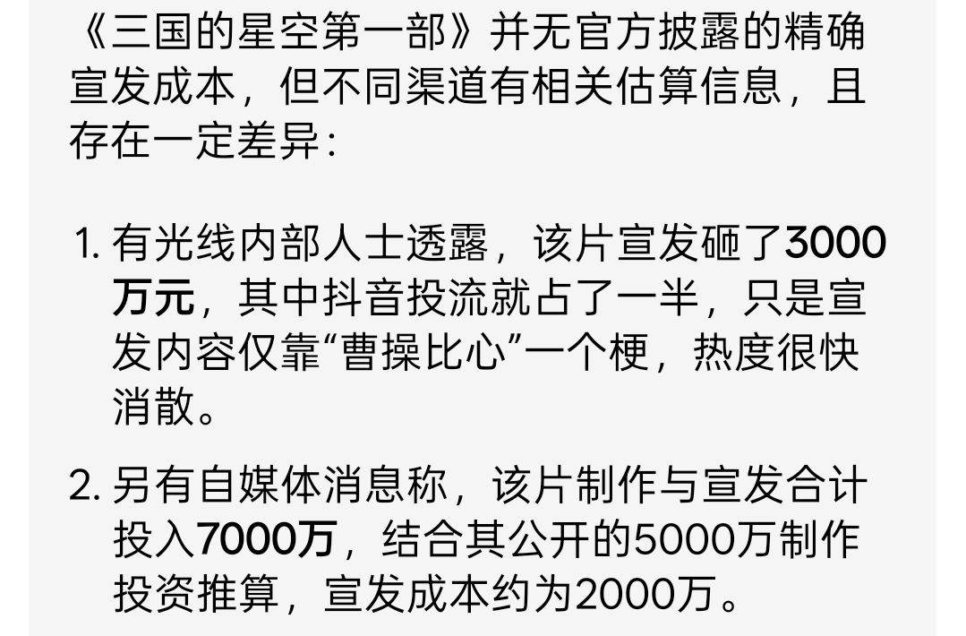 总投资5000万果麦4000亭东1000总票房8770分账37%8770*0.3