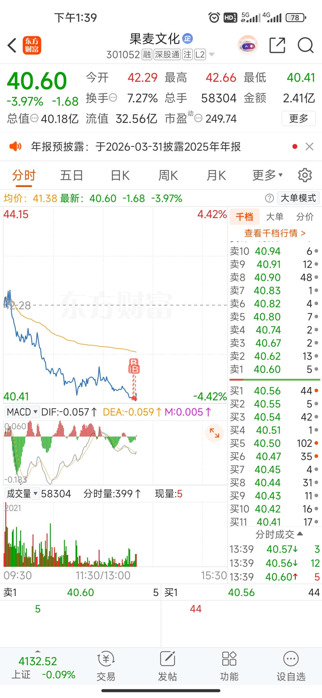 40.50抄底了,今天跌的差不多了,明天就算不反弹也跌不了太多了,兄弟们,放心上