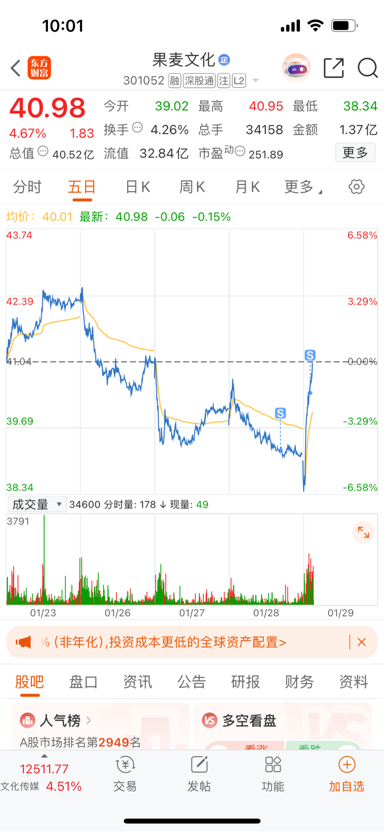 $果麦文化(SZ301052)$ 要不要这么对我,割肉了,涨那么多