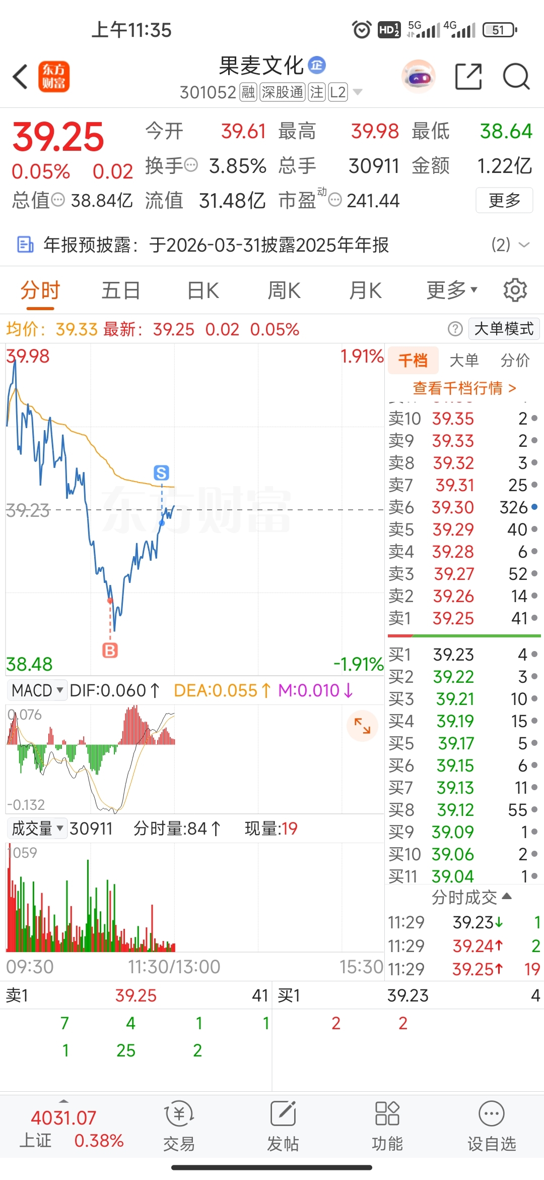 早上上班开会没时间看盘,错过了早上开盘卖出做T的机会,大盘绿了,赶紧买一点,主力你在我面前就是一个新兵蛋子,今天T的不多,只T了3毛5一股,算了,下午随便你怎么走了,明天再跌,我再和你玩。