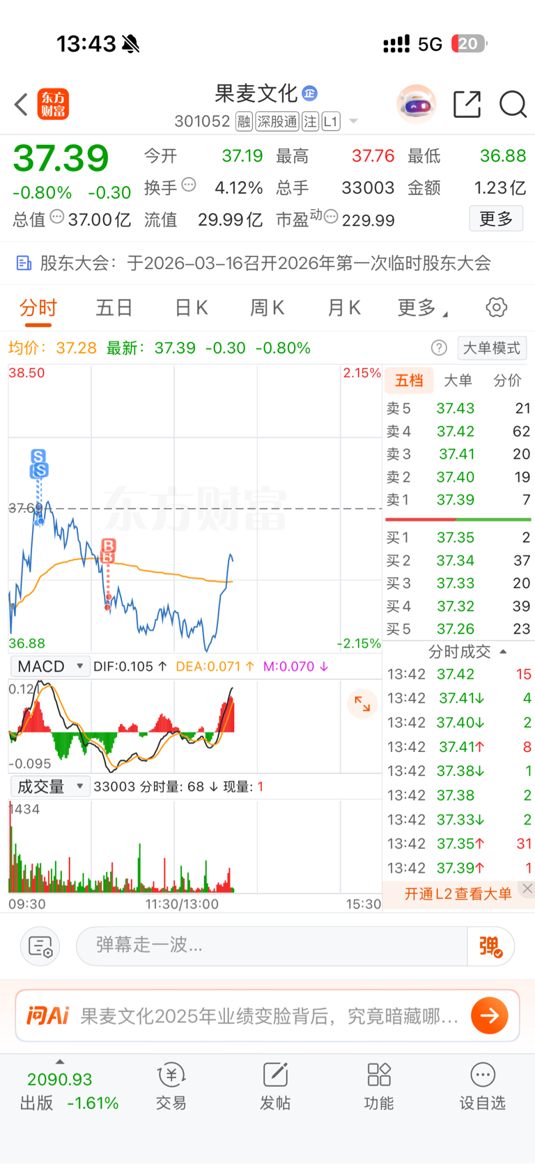 $果麦文化(SZ301052)$ 诶,天天做几毛的t,真是没意思,还亏16个点