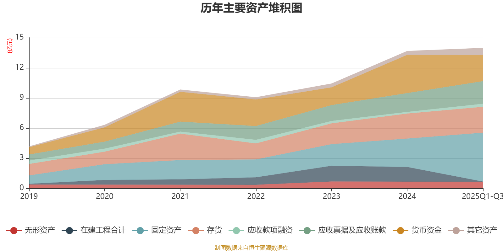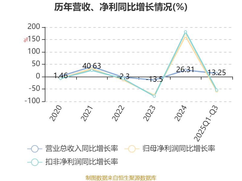 资产重大变化方面,截至2025年三季度末,公司固定资产较上年末增加71.93%,占公司总资产比重上升14.12个百分点;在建工程合计较上年末减少99.02%,占公司总资产比重下降10.56个百分点;货币资金较上年末减少31.4%,占公司总资产比重下降9.15个百分点;应收票据及应收账款较上年末增加19.93%,占公司总资产比重上升2.37个百分点。