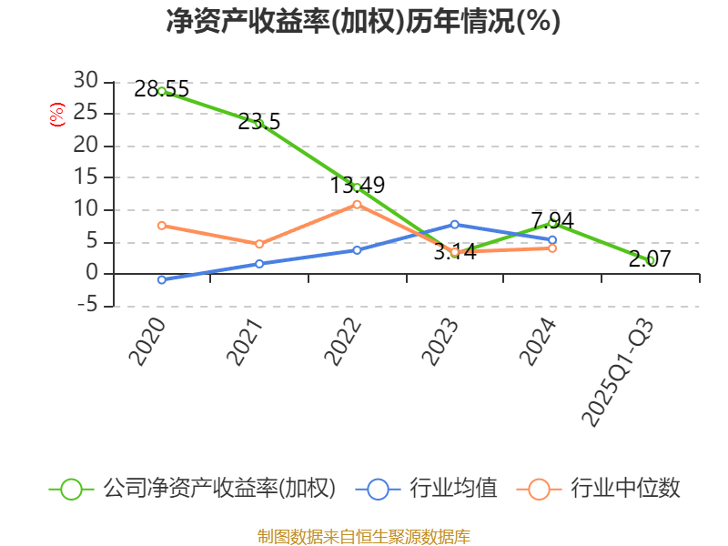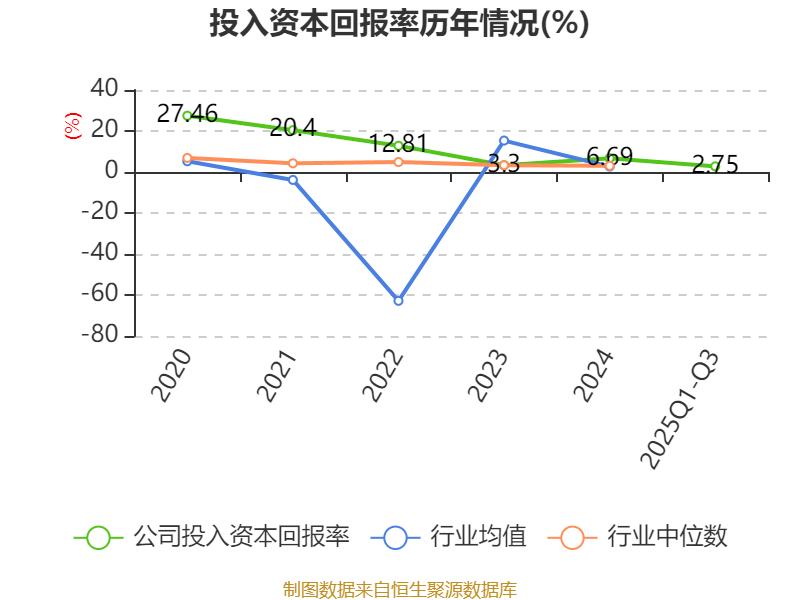 盈利能力方面, 2025年前三季度公司加权平均净资产收益率为2.07%,同比下降3.79个百分点。公司2025年前三季度投入资本回报率为2.75%,较上年同期下降1.85个百分点。