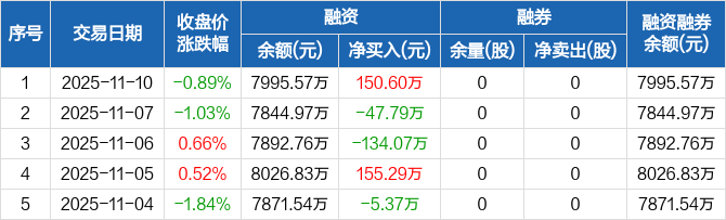 远信工业:融资净买入150.6万元,融资余额7995.57万元(11-10)