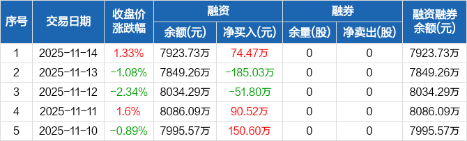 远信工业:融资净买入74.47万元,融资余额7923.73万元(11-14)