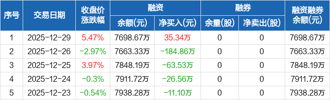 远信工业:融资净买入35.34万元,融资余额7698.67万元(12-29)