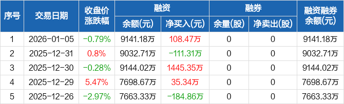 远信工业:融资净买入108.47万元,融资余额9141.18万元(01-05)