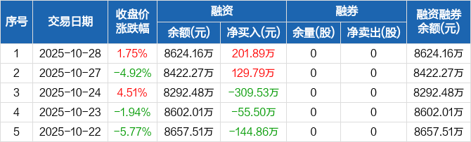 森赫股份:融资净买入201.89万元,融资余额8624.16万元(10-28)