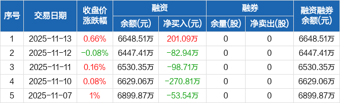 森赫股份:融资净买入201.09万元,融资余额6648.51万元(11-13)
