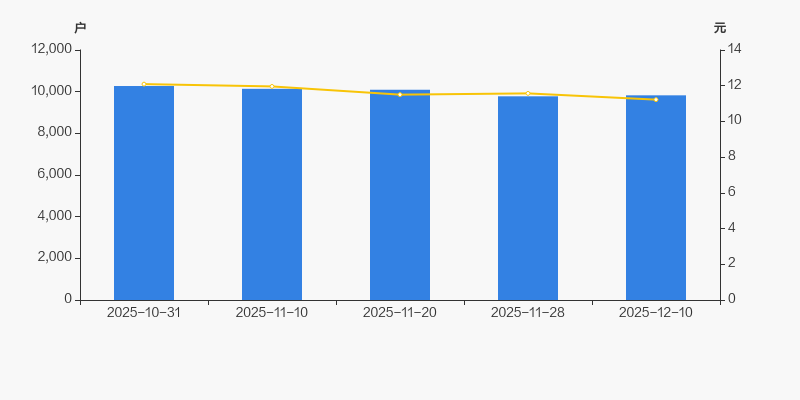 2025年10月31日至今,公司股东户数有所下降,区间跌幅为4.35%。2025年10月31日至2025年12月10日区间股价下降7.23%。