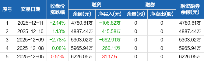 森赫股份:连续4日融资净偿还累计1445.43万元(12-11)