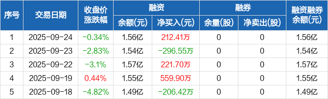 汇隆新材:融资净买入212.41万元,融资余额1.56亿元(09-24)
