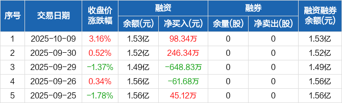 汇隆新材:融资净买入98.34万元,融资余额1.53亿元(10-09)