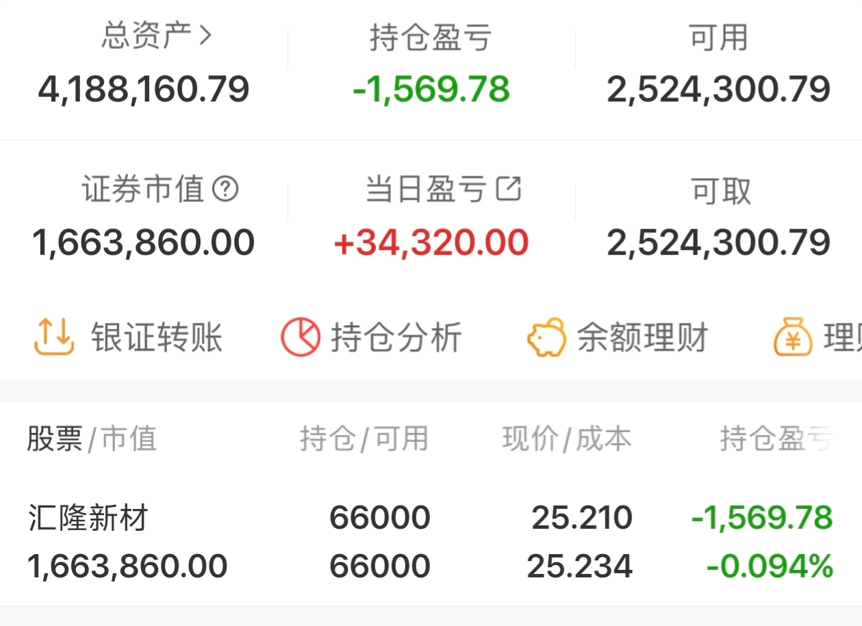 $汇隆新材(SZ301057)$ 实盘记录200个本炒股之旅(第115天)