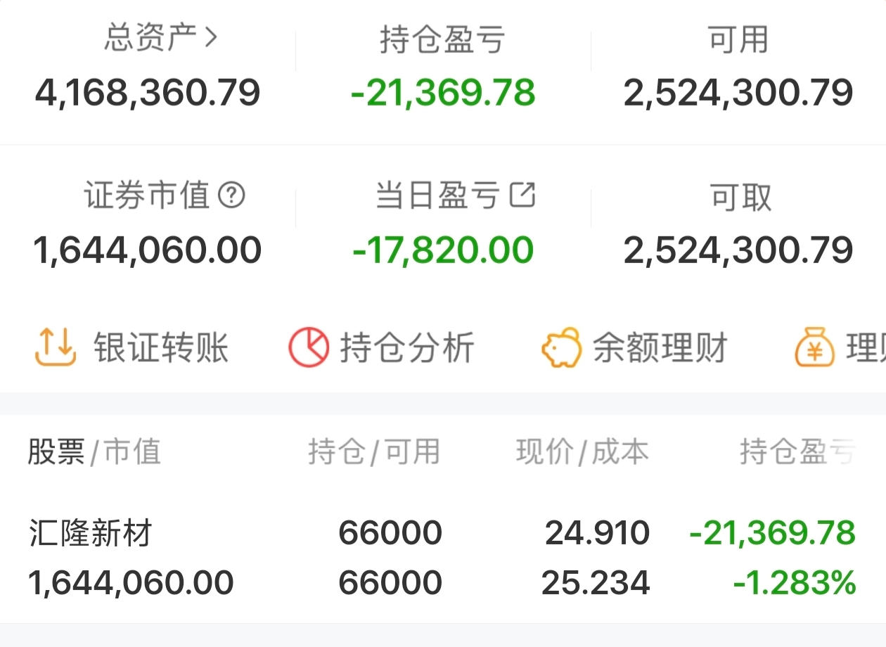 $汇隆新材(SZ301057)$ 实盘记录200个本炒股之旅(第116天)