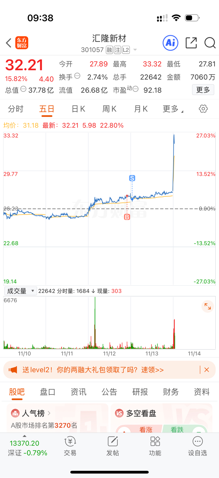 $汇隆新材(SZ301057)$ 天天沉不住气