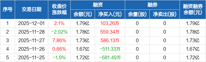 汇隆新材:融资余额1.79亿元,创历史新高(12-01)