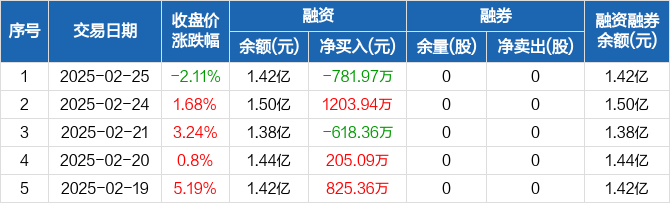 中粮科工:融资净偿还781.97万元,融资余额1.42亿元(02-25)