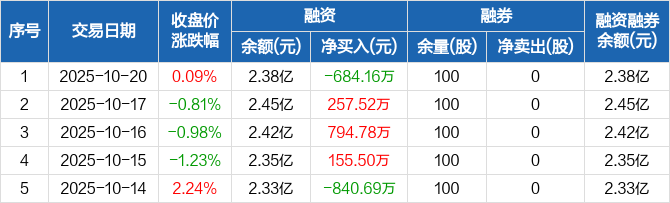 中粮科工:融资净偿还684.16万元,融资余额2.38亿元(10-20)
