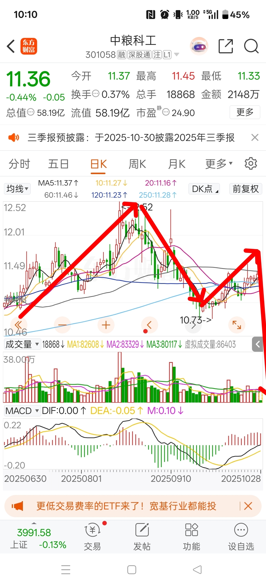 $中粮科工(SZ301058)$ 60日线压制下,第二波回调开始。