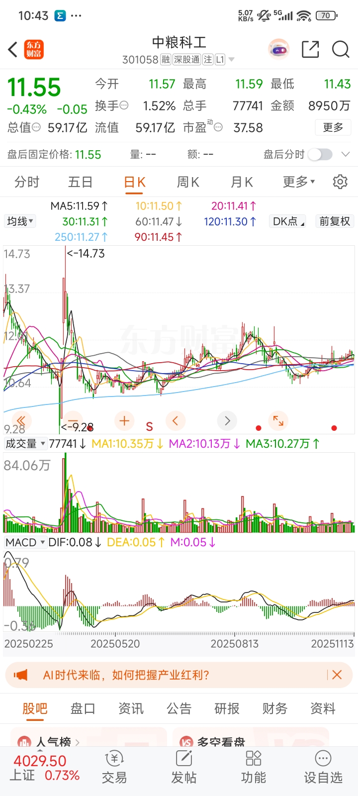 $中粮科工(SZ301058)$ 弓箭已经拉满,只等松手的那一刻!K线形态和筹码结构堪称完美,一旦放量突破12元,不翻一倍是不可能的!万事俱备只欠东风!散户耐心等待即可!