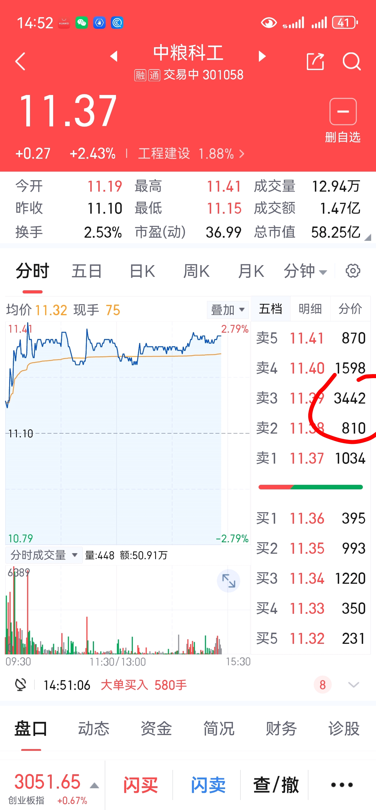 $中粮科工(SZ301058)$ 谁挂的卖单,真怂,两个点也卖