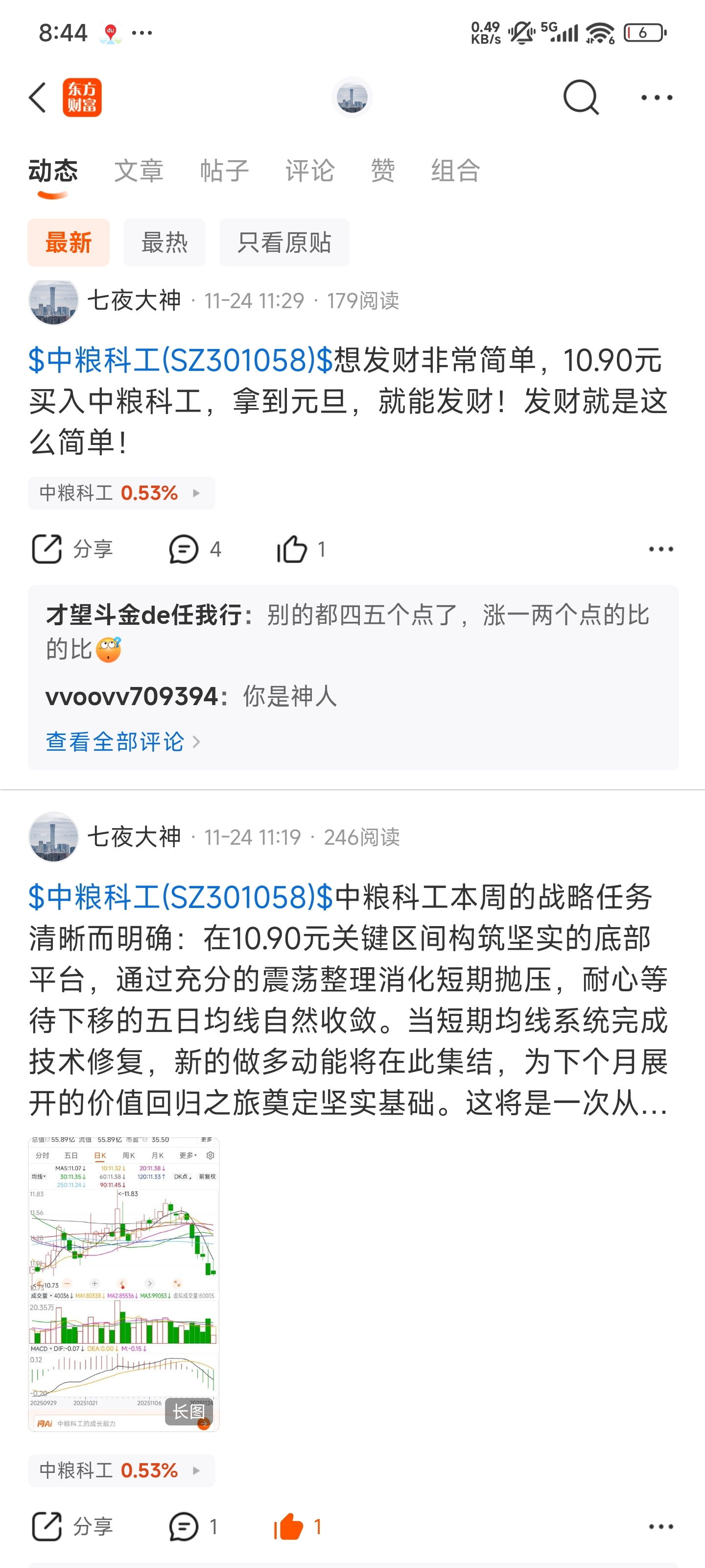 $中粮科工(SZ301058)$ 听我的话的都咔咔赚了吧?你们不服不行啊,明天要减仓出来,要回踩调整,今天水下买了数字政通,想赚钱的跟我继续操作数字政通!
