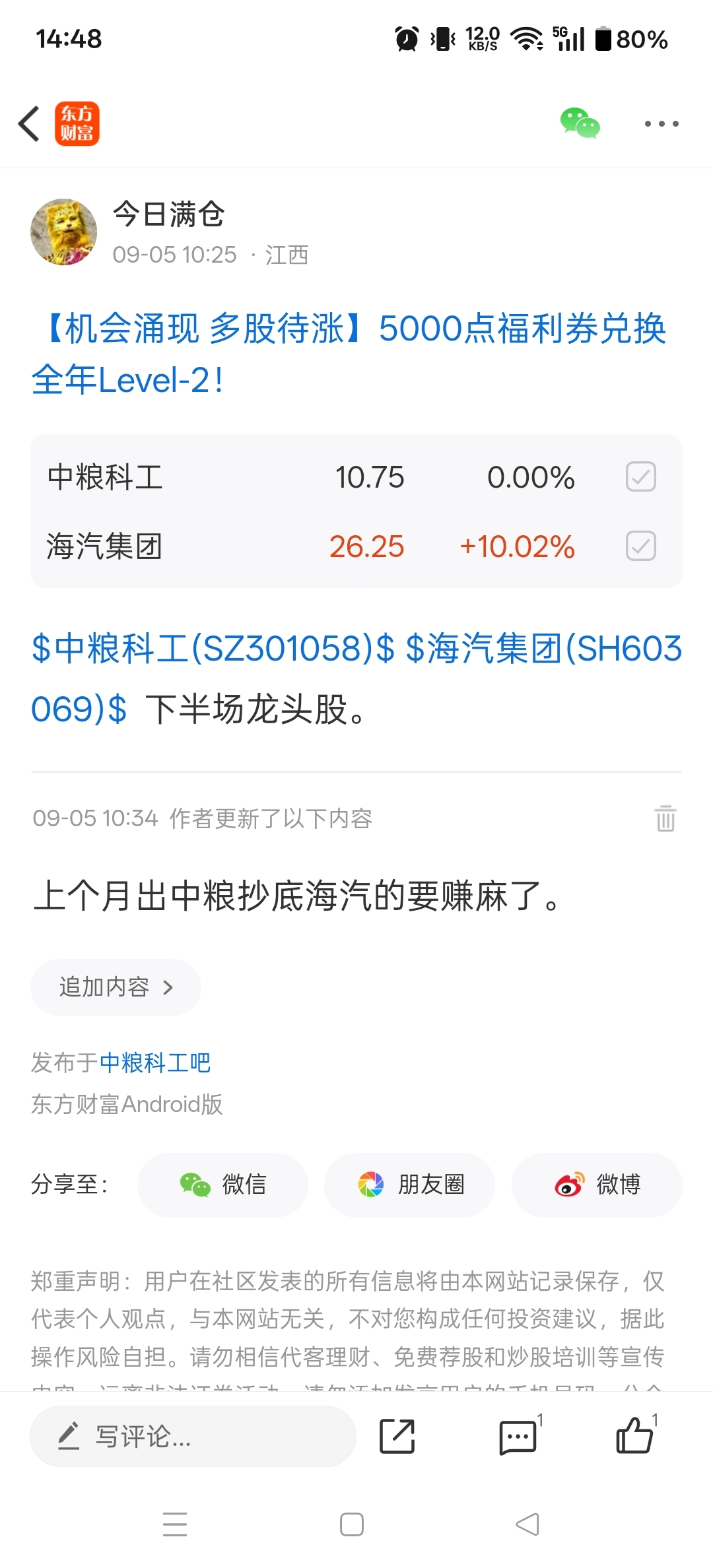 温馨提示: 1.根据《证券法》规定,禁止编造、传播虚假信息或者误导性信息,扰乱证券市场;2.用户在本社区发表的所有资料、言论等仅代表个人观点,与本网站立场无关,不对您构成任何投资建议。用户应基于自己的独立判断,自行决定证券投资并承担相应风险。《东方财富社区管理规定》