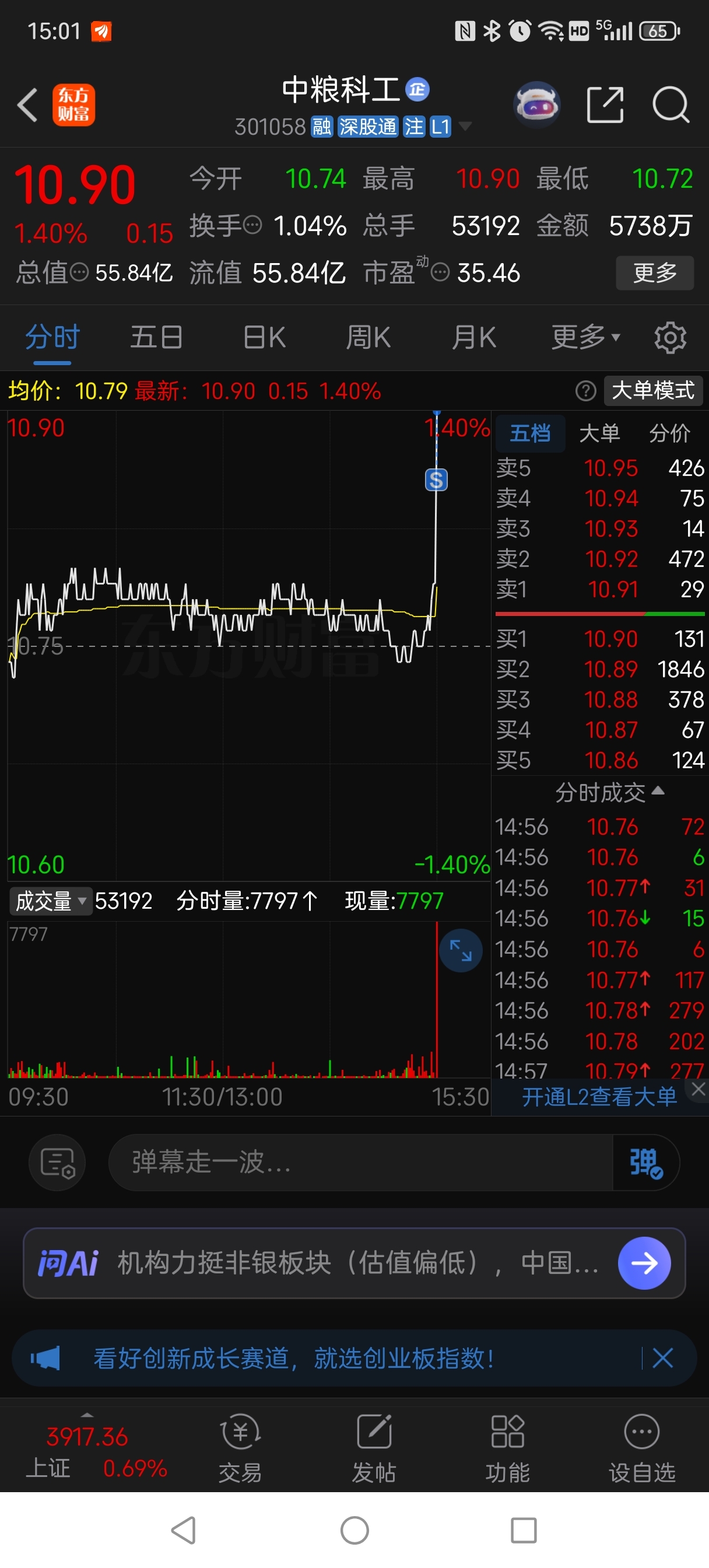 $中粮科工(SZ301058)$ 什么情况,挂了一天,最后一秒成交了?