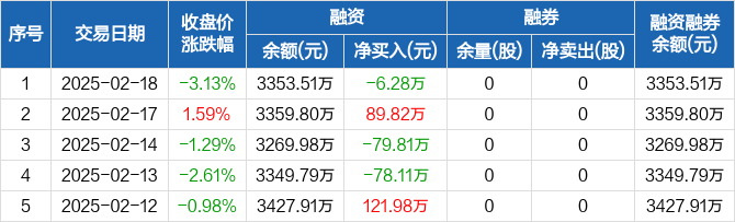 金三江:融资净偿还6.28万元,融资余额3353.51万元(02-18)