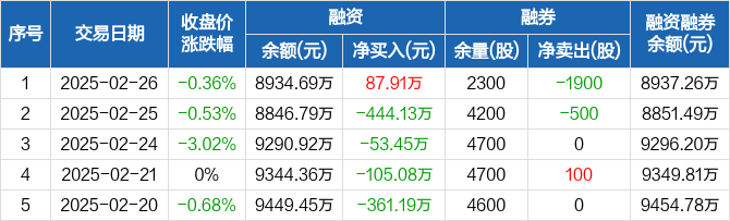兰卫医学:融资净买入87.91万元,融资余额8934.69万元(02-26)