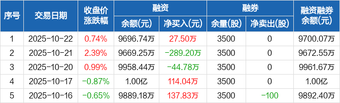 兰卫医学:融资净买入27.5万元,融资余额9696.74万元(10-22)