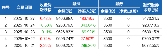 兰卫医学:融资净买入183.19万元,融资余额9466.98万元(10-27)