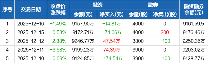 兰卫医学:融资净偿还14.81万元,融资余额9157.9万元(12-16)